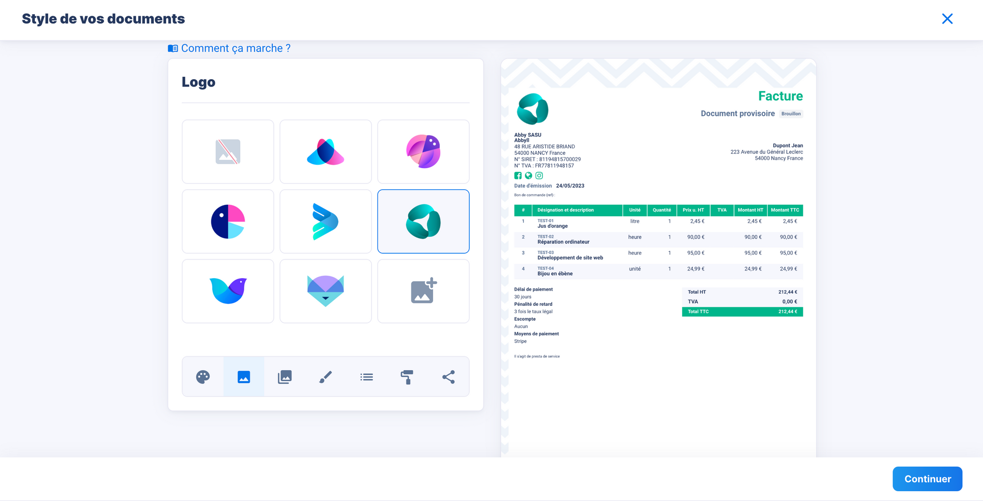 🖥️ Meilleure option : émettre une facture depuis un logiciel de facturation avec des templates intégrés
